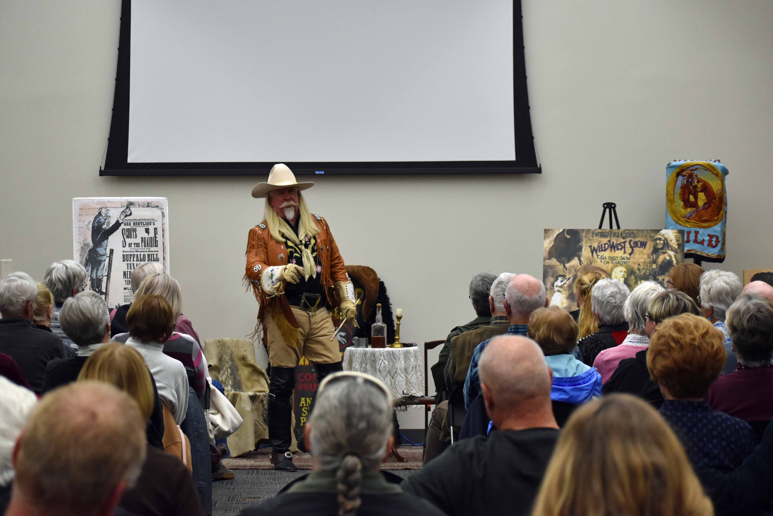 We had an exciting experience back to the Old West.  Nationally acclaimed re-enactor, Jeff Norman entertained guests as Buffalo Bill Cody.  Jeff guided us down the untamed frontier trail that was Buffalo Bill’s life, in a costumed one-man play that’s as entertaining as it is informative.