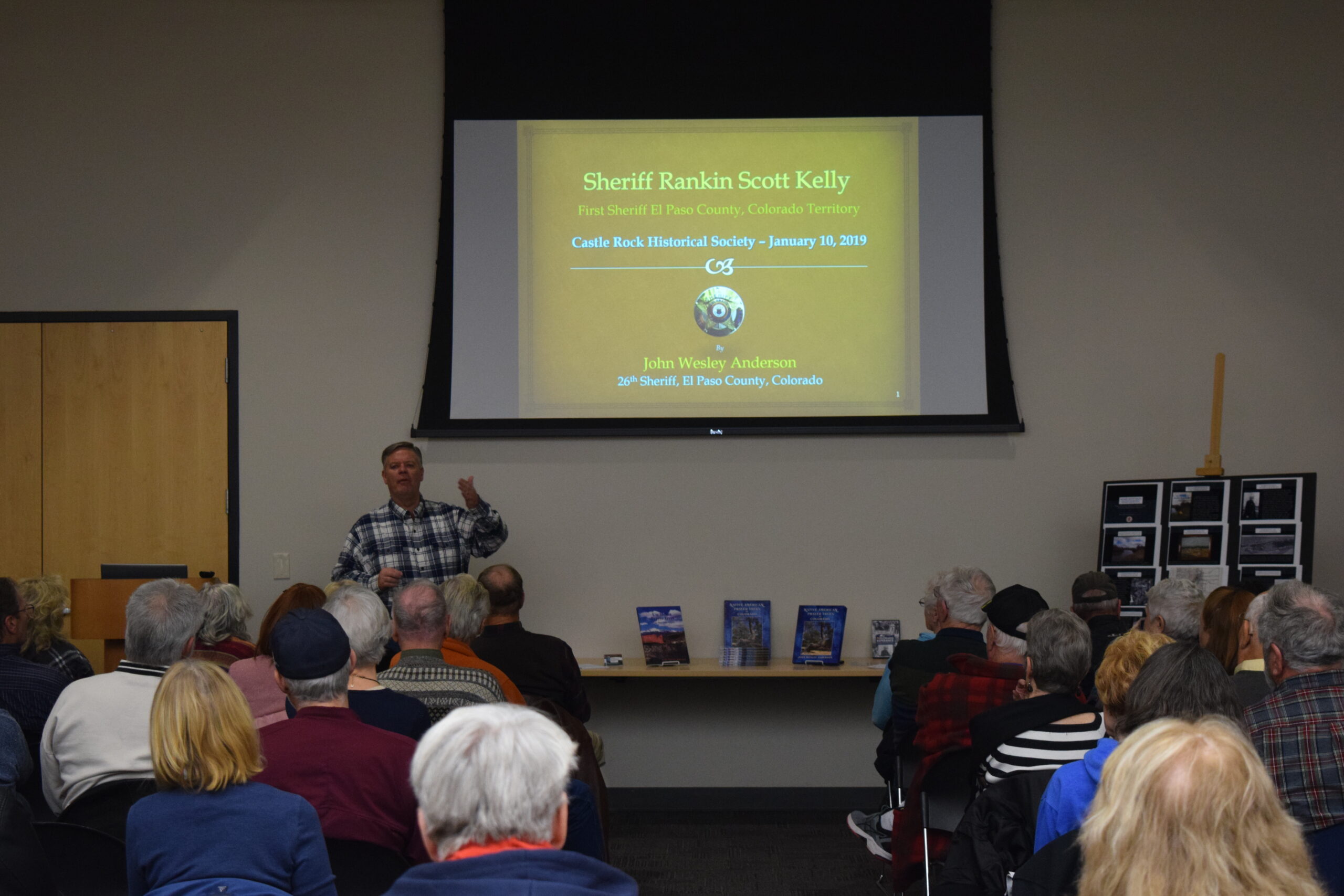 A presentation by former El Paso County Sheriff, John Anderson on his book about “Rankin Scott Kelly, 1stSheriff El Paso County, Colorado Territory 18-61 – 1867”.  Kelly traveled west along the Santa Fe trail in 1860 with a wagon train of about 50 people.  Scott Kelly was appointed Sheriff in 1861 and his first duty was to take on the Salt Lake City Jim Gang which was his first of many gunfights with outlaws and hostile Indians.  John Anderson is an author, artist, consultant and former local Lawman himself.